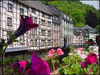 Inmitten der mittelalterlichen Stadtanlage, die vom Flüsschen Rur durchzogen wird, dominieren schieferverkleidete Häuser und Fachwerkbauten mit Cafés, Gaststätten oder Kunsthandwerks- und Souvenirläden.